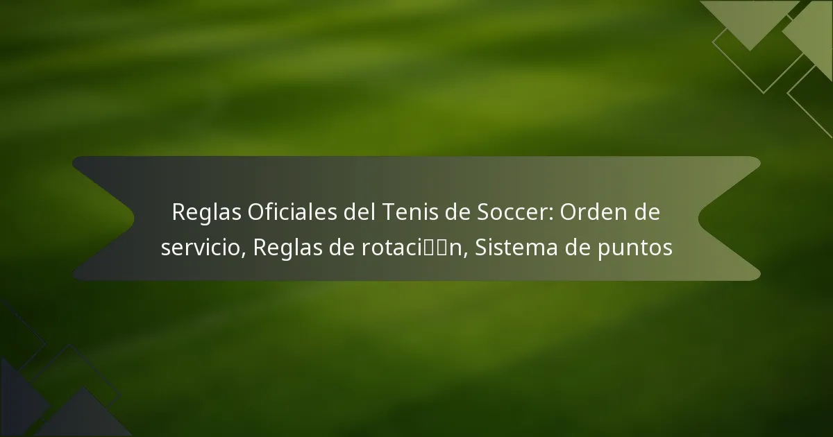 El tenis soccer combina elementos del fútbol y el tenis, jugado en una cancha donde los jugadores utilizan sus pies para golpear una pelota sobre una red. El juego sigue reglas específicas respecto al orden de servicio, rotación y puntuación, asegurando un juego limpio y competitivo. Comprender estas reglas es esencial para mantener la equidad y mejorar la dinámica del juego.